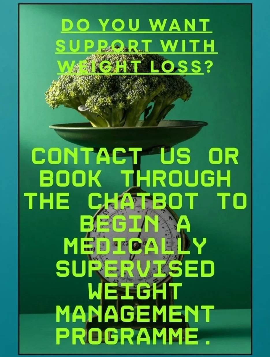 If you are struggling with weight loss, you can book a dedicated GP consultation to support you with a safe, sustainable, and medically supervised approach to weight management through lifestyle changes and medications. Call our Admin Team on 01 8454265 to book an appointment with one of GPs or through the Chatbot. The fee for the consultation is €70 and is free to medical card patients.